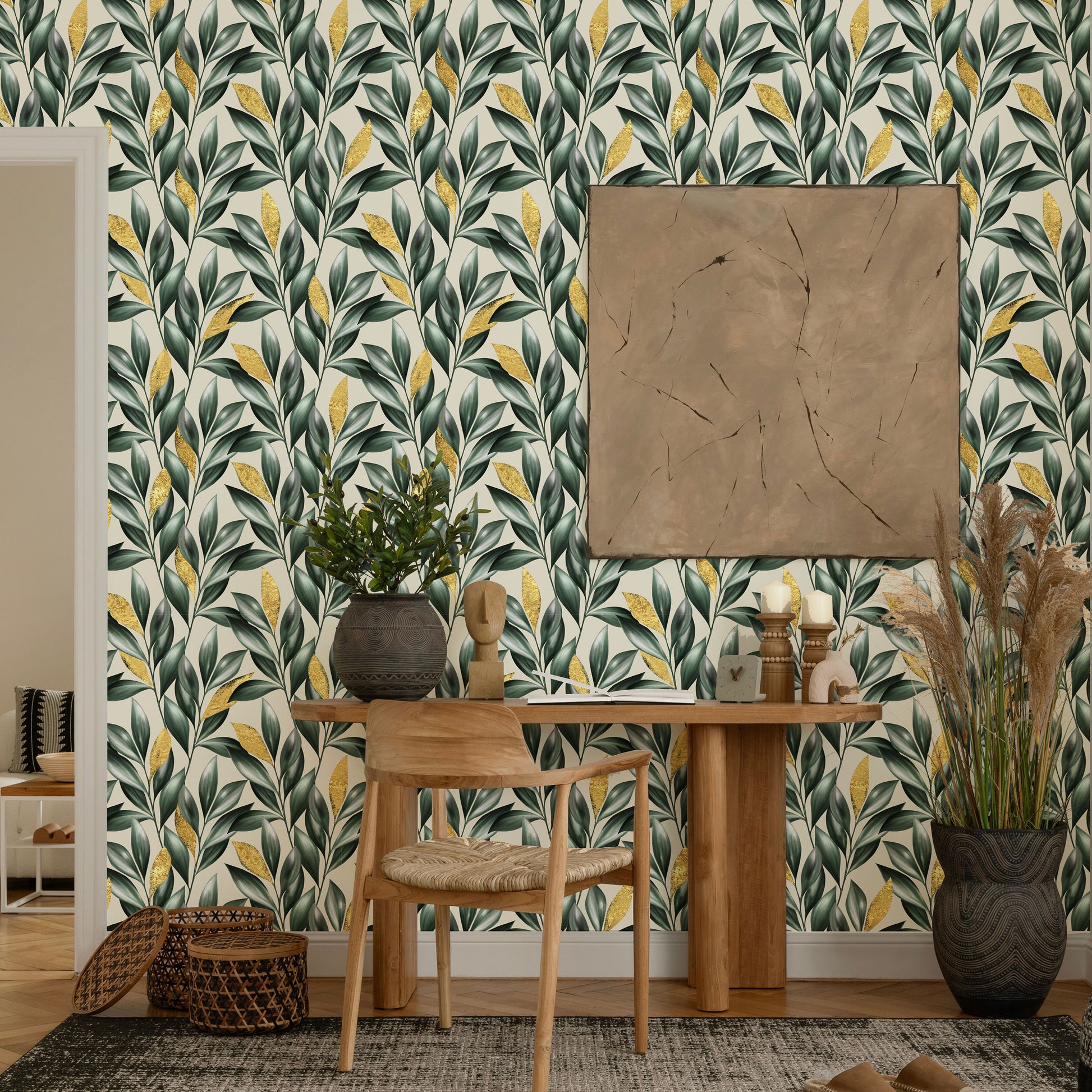 Bring a bold, tropical elegance to your space! The Island Icon design features lush green leaves in rich, natural tones accented with shimmering gold details, creating a luxurious and modern botanical look. Set against a soft neutral backdrop, this pattern adds depth and sophistication to any room. Perfect for accent walls, furniture makeovers, or stylish DIY projects, these peel and stick sheets make decorating effortless—no glue, no mess, just peel and stick.
